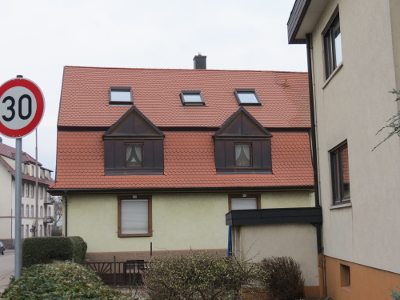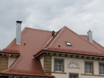 | Neueindeckung des Daches mit Bieberschwanzziegeln in Doppeldeckung inklusive der Dachschalung und der Dachlattung. "Braustüble" Ulm | |